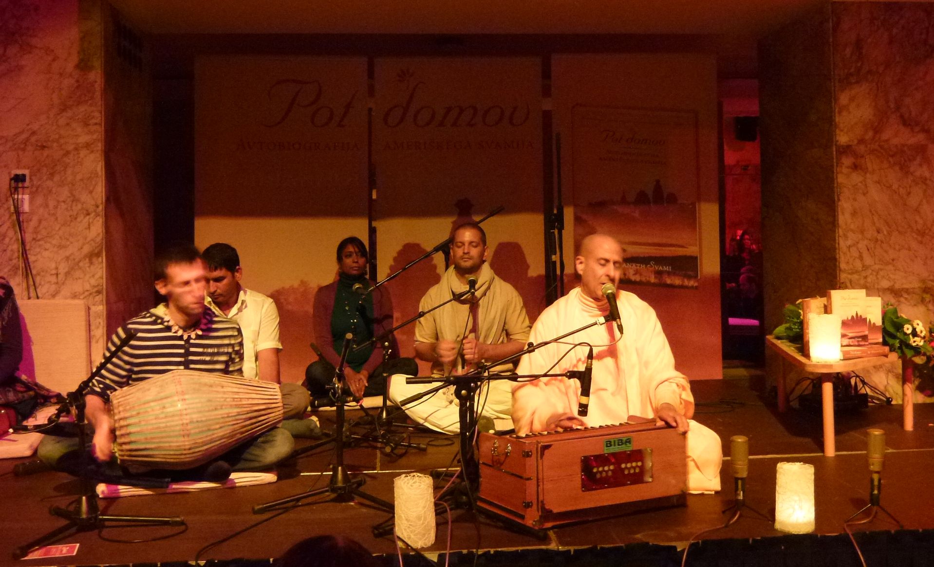 Nastop Radhanatha Svamija je bil osrednji dogodek na prireditvi. Zapel in zaigral je zanosni kirtan, ki ga je vsake toliko popestril z večno modrostjo iz Ved in bhakti joge. Povedal je, da ima sveto ime takšno duhovno moč, da lahko preobrazi srce ter prinese mir in slogo celotnemu vesolju, če ga pôjemo iskreno in molimo za božansko milost. Da bi podprl svojo misel, je povedal mistično zgodbo o tem, kako je Gospod Čaitanja* v džungli Džharikhande s svetim imenom pobratil srne in tigre, ki so sicer smrtni sovražniki.