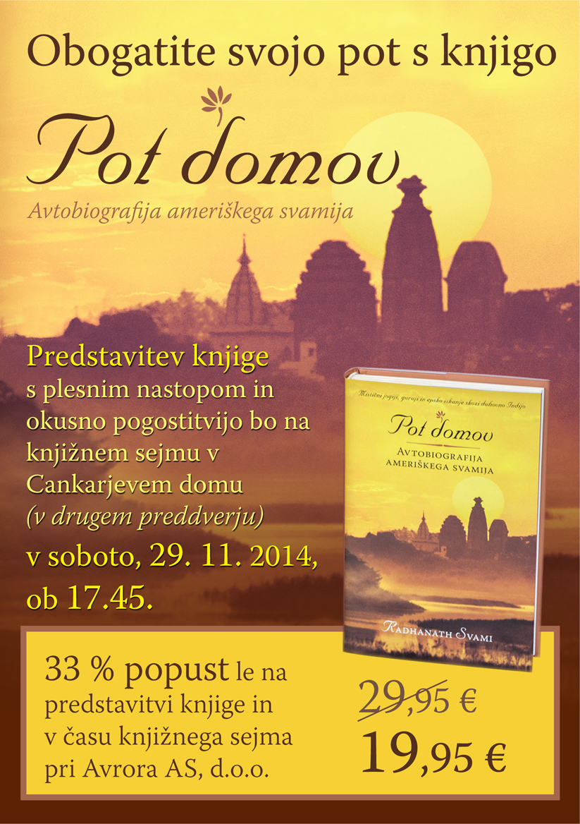Vabimo vas na zanimivo predstavitev mednarodne uspešnice Pot domov, Avtobiografija ameriškega svamija, ki bo potekala v soboto, 29. 11. 2014, ob 17.45 na knjižnem sejmu v Cankarjevem domu v drugem preddverju (-2).